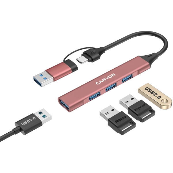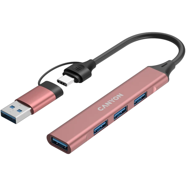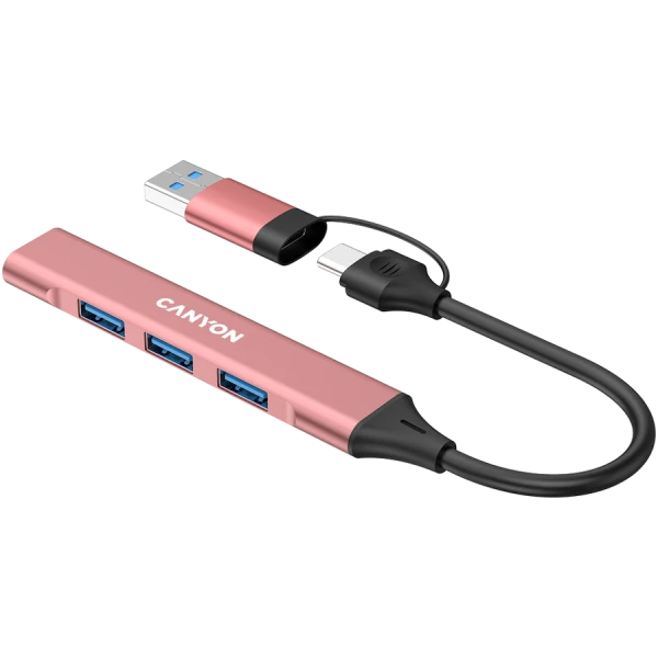- CANYON hub DS-02 4in1 USB-AC Pink