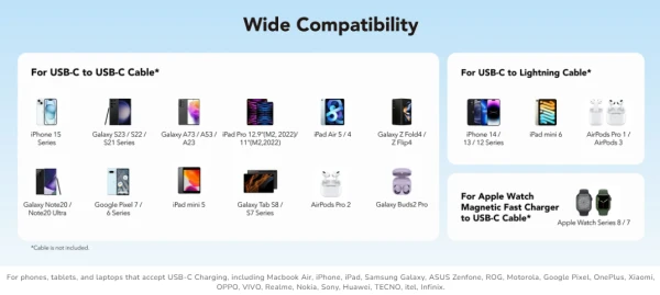 -USB-C1 + USB-C2: 20.0 W + 20.0 W