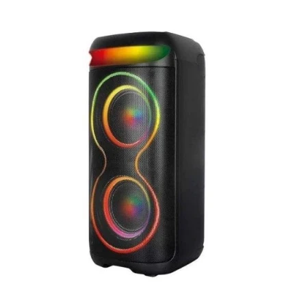 - Izlazna snaga : 40 W Bluetooth verzija : 5.0 Baterija : 3600 mAh, do 6 sati rada Punjenje : USB RGB osvetljenje : Da Dodatne funkcije : TWS, FM radio, USB, TF, AUX, MIC IN, dva bežična mikrofona