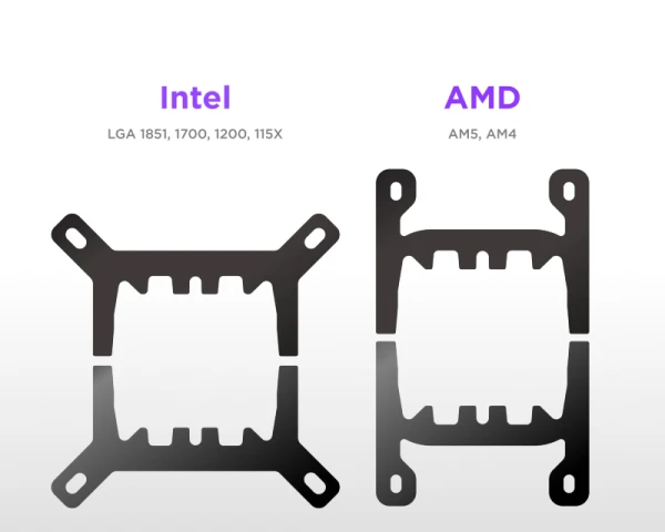 - Intel 115x, Intel 1200, Intel 1700, AMD AM4, AMD AM5, Intel 1851