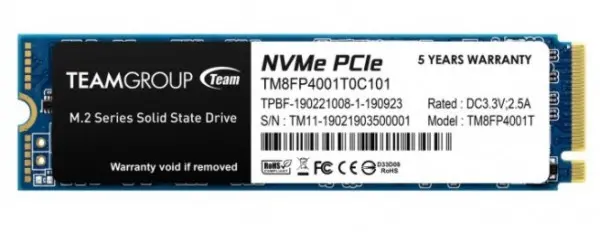 TeamGroup * M.2 2280 1TB MP34 SSD PCIe Gen3 x4, NVM Express, 3400/2900MB/s TM8FP4001T0C101