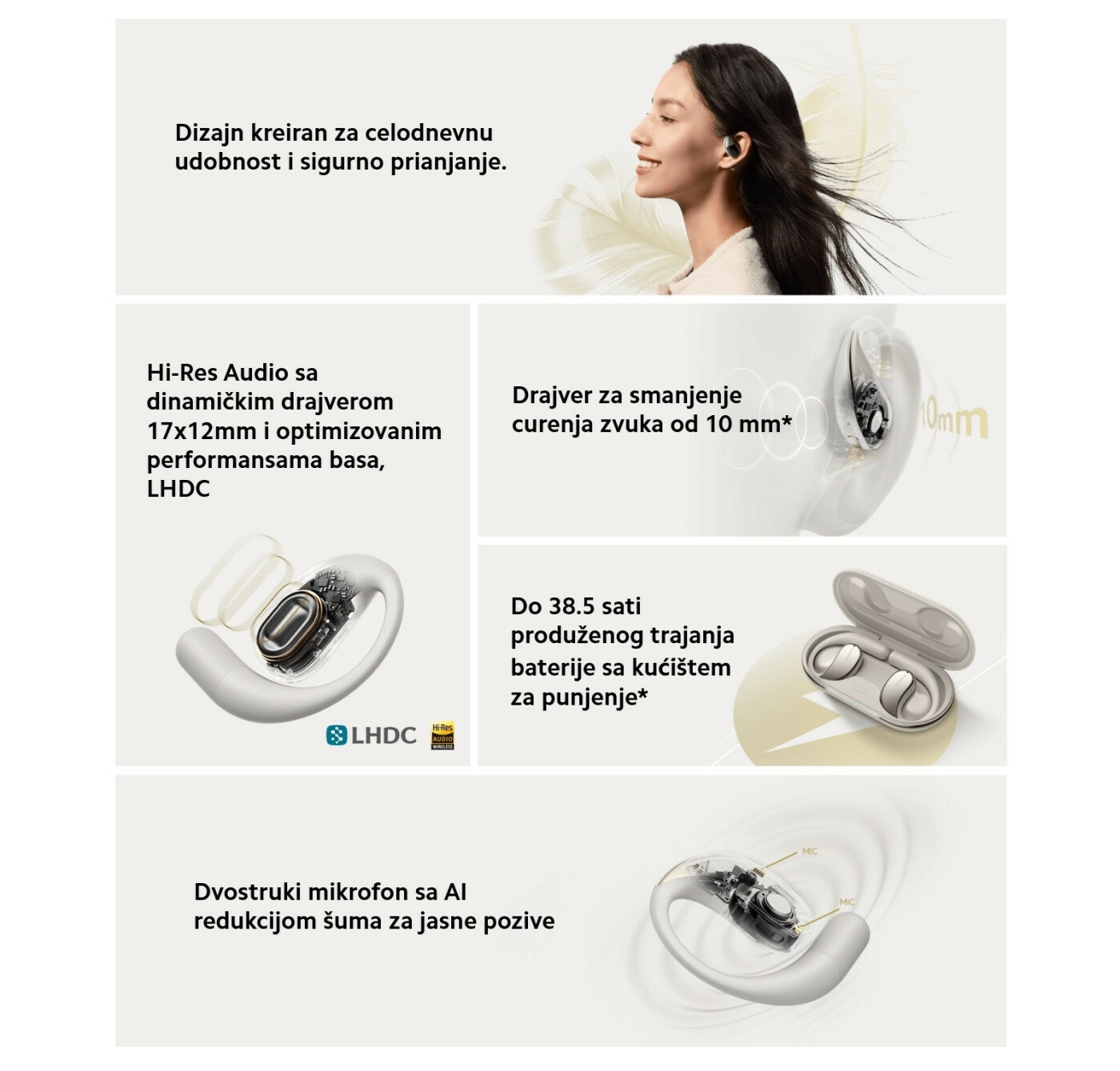 Budite prvi koji ce dati recenziju za: "XIAOMI Mi OpenWear BT slušalice Sandstone Beige"