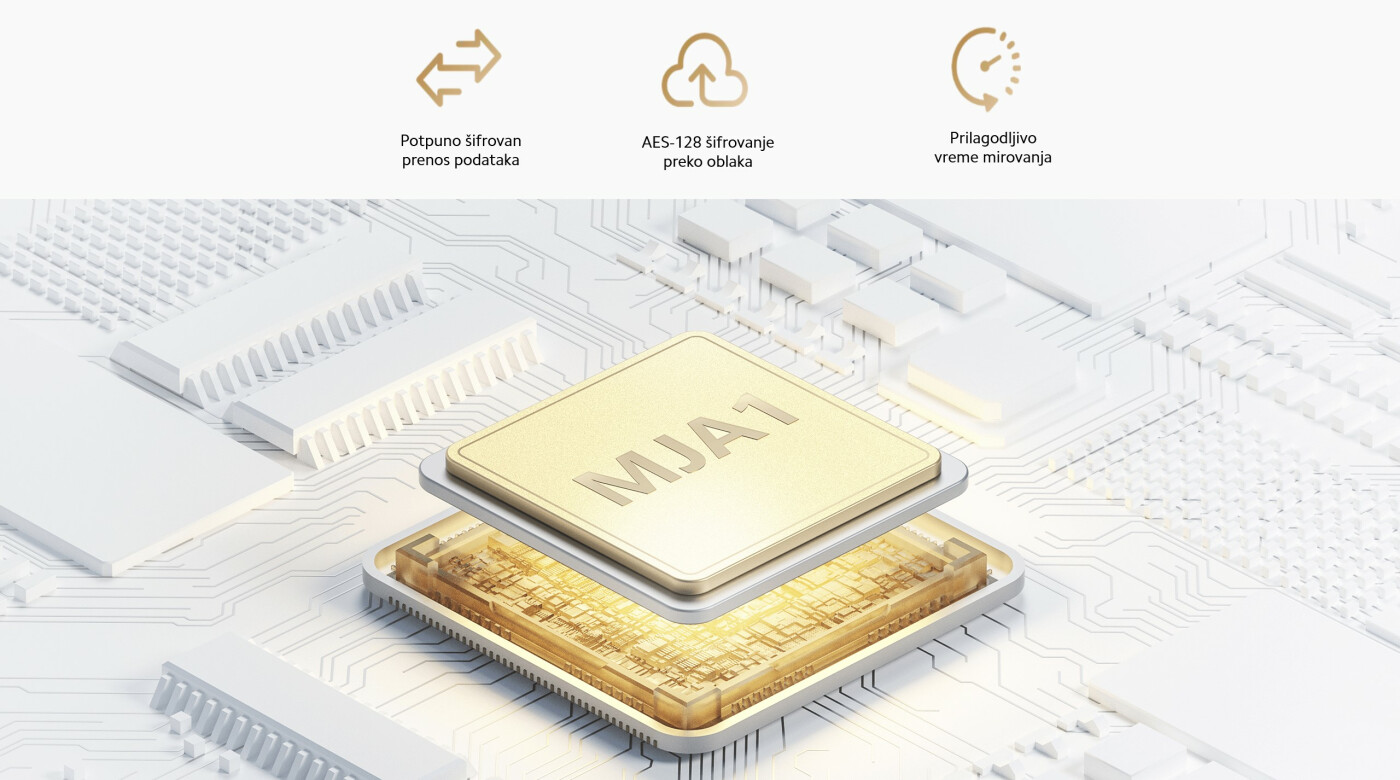 Svaki ugrađeni MJA1 bezbednosni čip ima jedinstveni ključ i akreditive za efikasnu zaštitu komunikacije podataka i privatnosti korisnika uz finansijske mere bezbednosti.