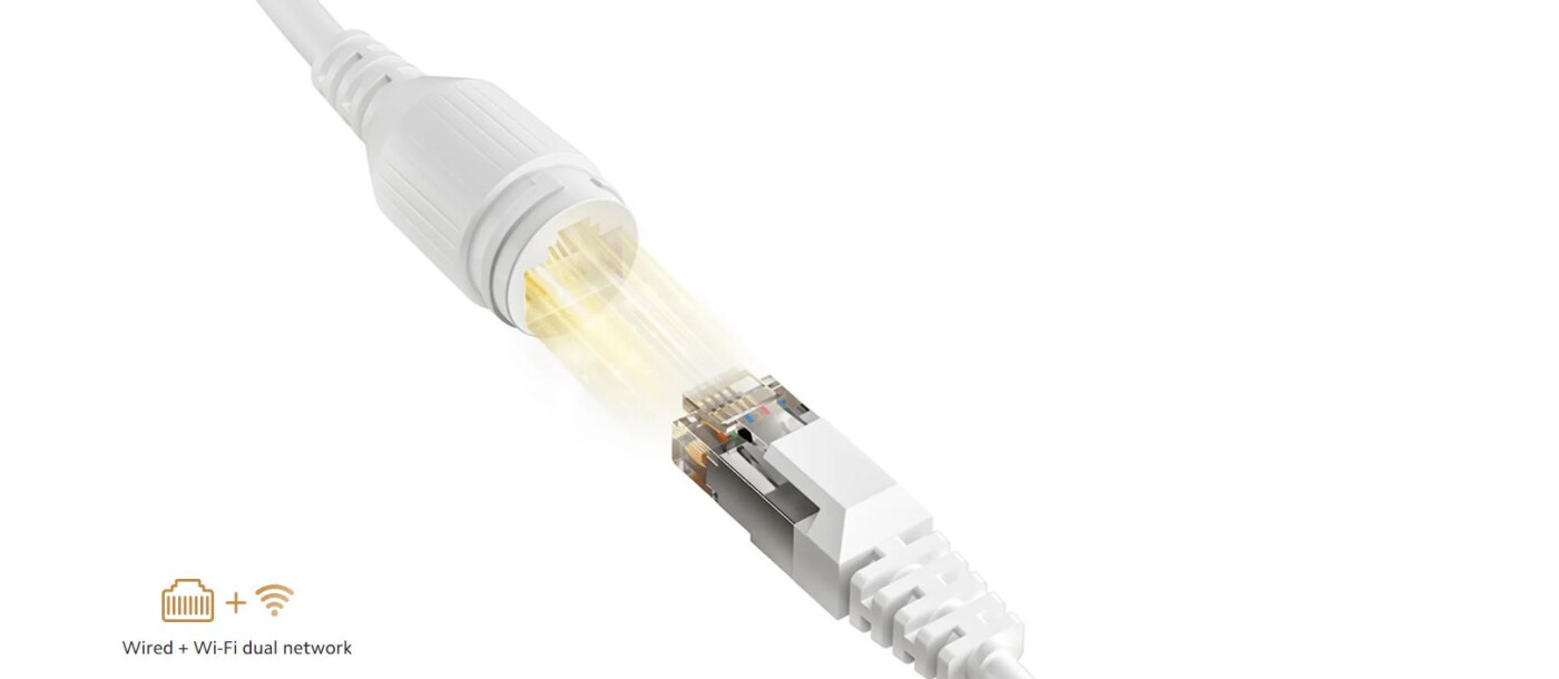 Podržana Wi-Fi mreža od 2,4GHz. Kamera takođe dolazi sa ugrađenim Ethernet portom tako da možete izabrati željeni način povezivanja. Veza je stabilnija, smanjuje prekide veze i pruža glatko korisničko iskustvo.