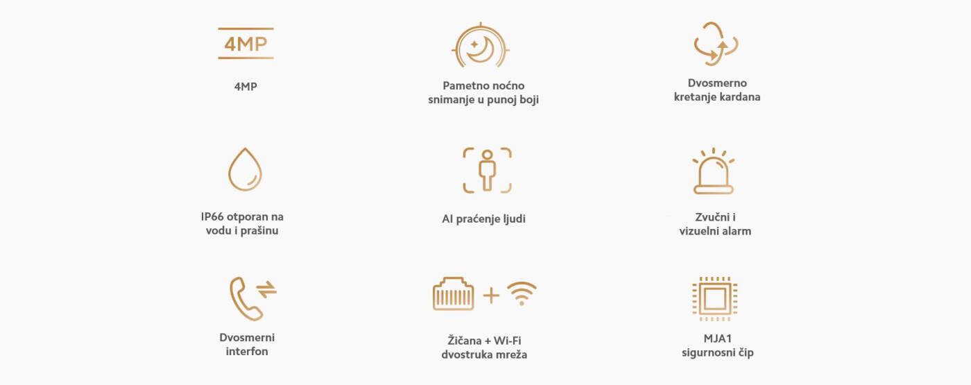 Kamera dolazi sa ugrađenim mikrofonom visoke osetljivosti i visokokvalitetnim zvučnikom velike snage, pojačanim AI algoritmom za poništavanje buke. Dug opseg hvatanja obezbeđuje glasan i čist zvuk čak i u složenim spoljašnjim uslovima.