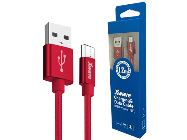 Xwave Kabl USB2.0 na Micro USB 1.2M,2A,aluminium,upleten,crveni